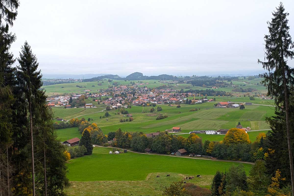 Zunächst verläuft alles normal. Der Weg aus Pfronten heraus steigt leicht an und führt in den Wald. Der Hochnebel am heutigen Tag verstellt uns leider schöne Ausblicke auf die Allgäuer Alpen. Doch die herbstlichen Färbungen lassen sich dadurch nicht beeindrucken.